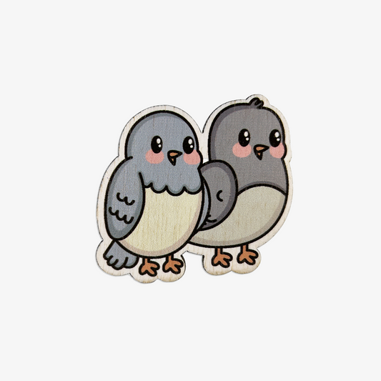 Birdies Wooden Brooch Pin (with Cotton Pouch)