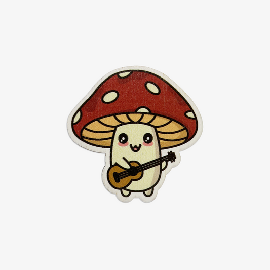 Mushroom Playing Guitar Wooden Brooch Pin (with Cotton Pouch)