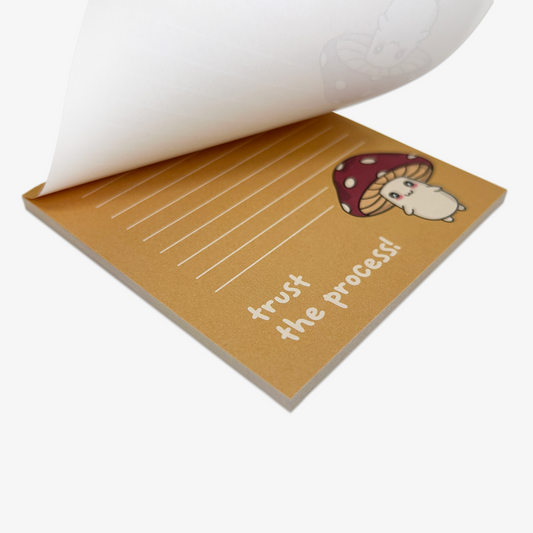 I love the quality of the printing materials, and of course, the cute little characters with their positive messages. I also bought some stickers of my favorite character, the little mushroom. The stickers are equally adorable, and I enjoy his sarcastic yet lovable comments.